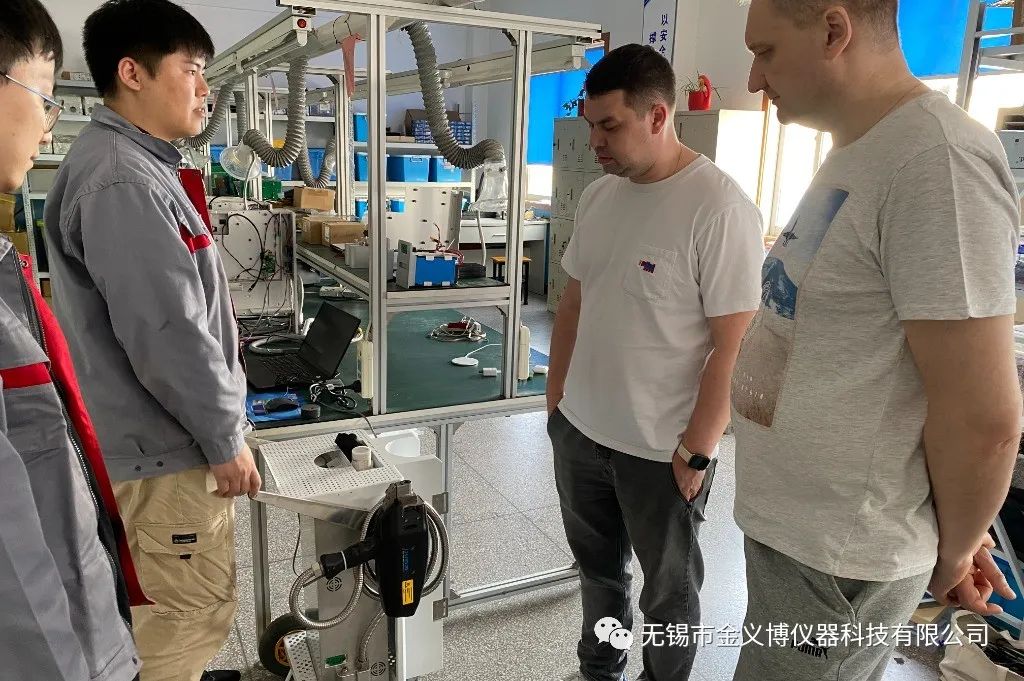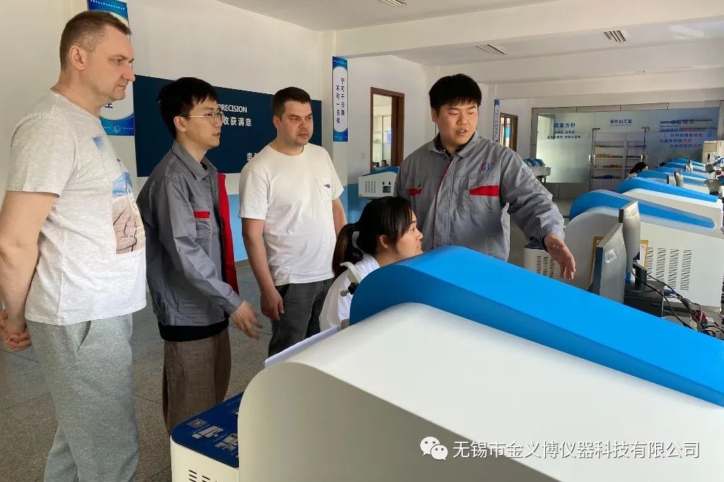 2023年4月21日,俄羅斯的外國友人蒞臨無錫市金義博儀器科技有限公司參觀學習 。由公司國際貿易部的同事帶領著兩位外國友人參觀金義博直讀光譜分析儀制造生產線,對相關產品、技術等進行詳細地了解和實踐。