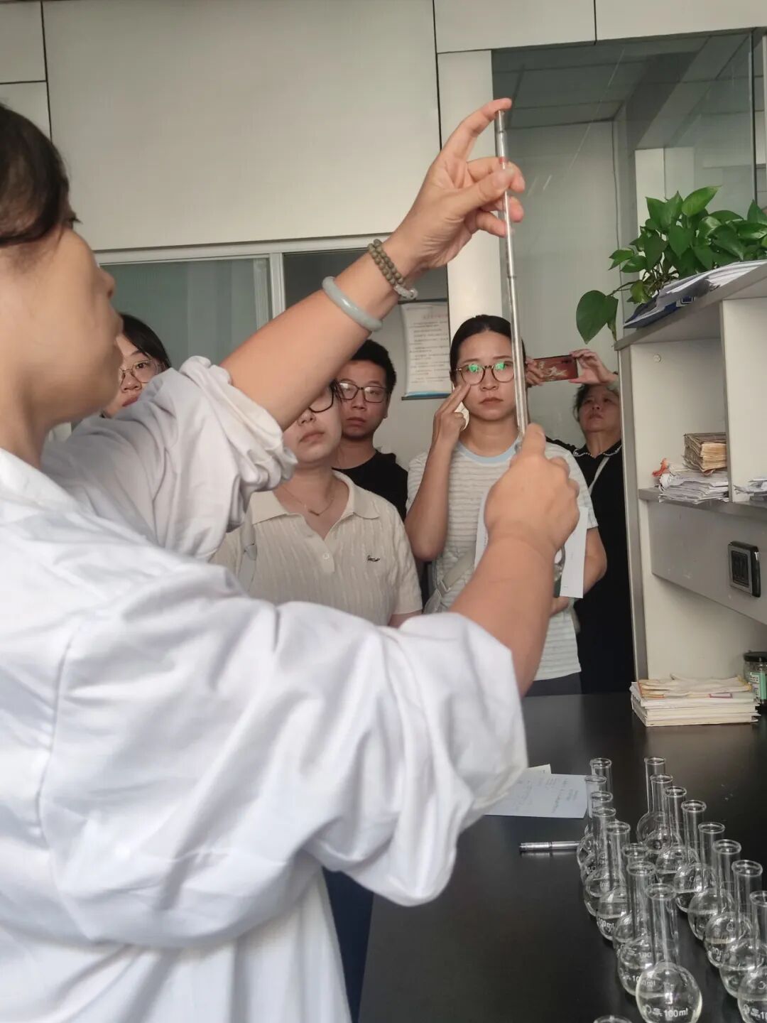 無錫市機械工程學會2025年度化學檢驗的學員們在金義博第三方檢測中心金義博檢測技術有限公司理化學分析實驗室進行實訓實習。通過現場實習實訓,學員們不僅學習了理論基礎,更能深入地進行實踐和儀器操作。
